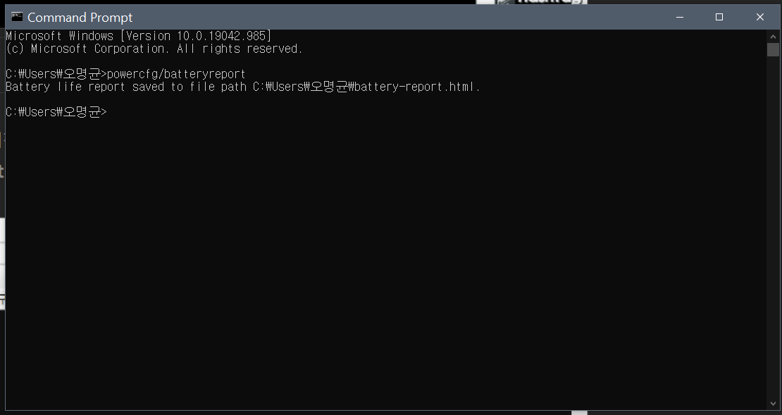 CMD 명령 프롬프트 실행 powercfg/batteryreport 입력 후 엔터